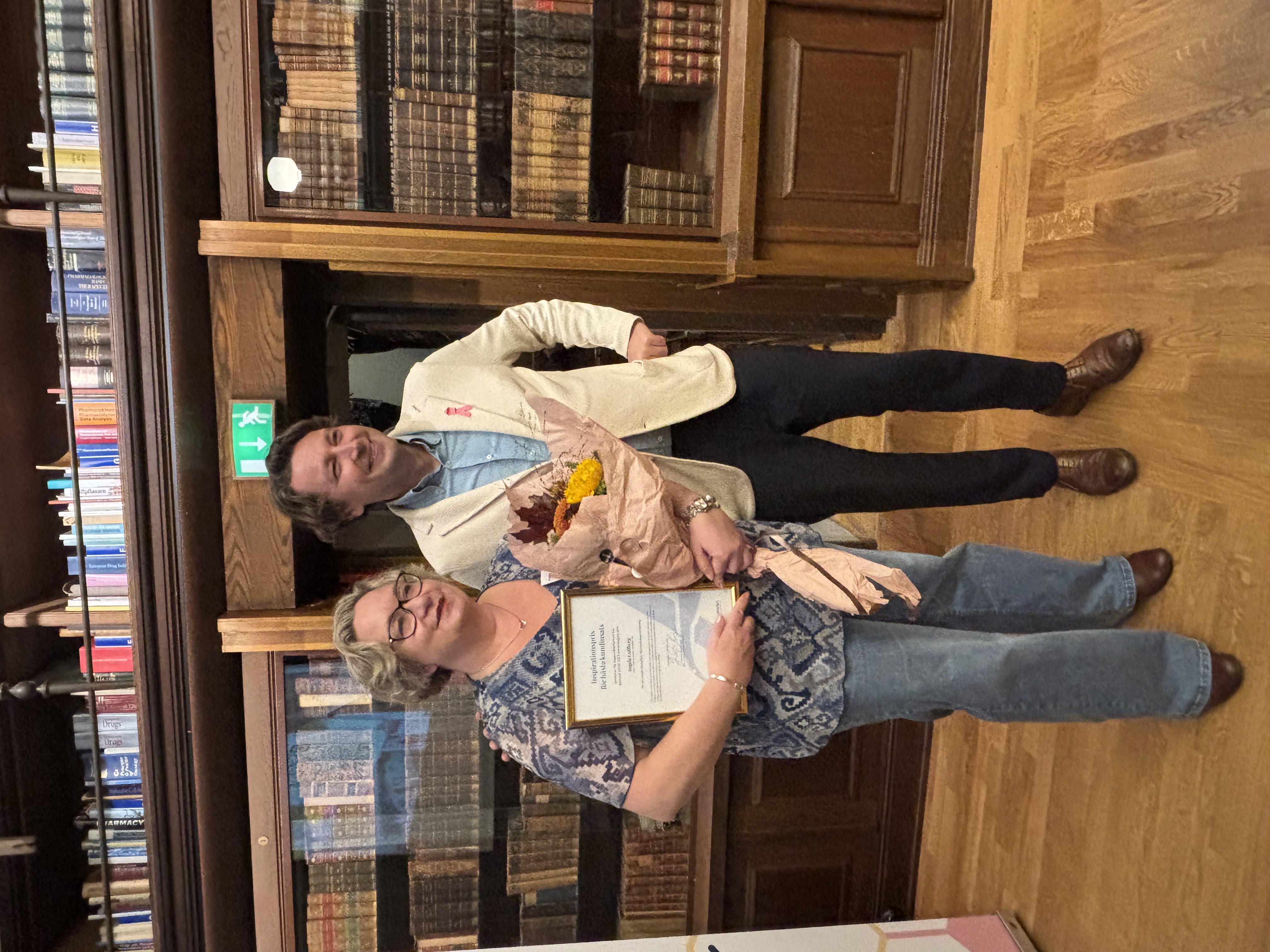 Ingela Gullberg tillsammans med vd Rasmus Nerman vid utdelningen på Apotekarsocieteten i Stockholm.